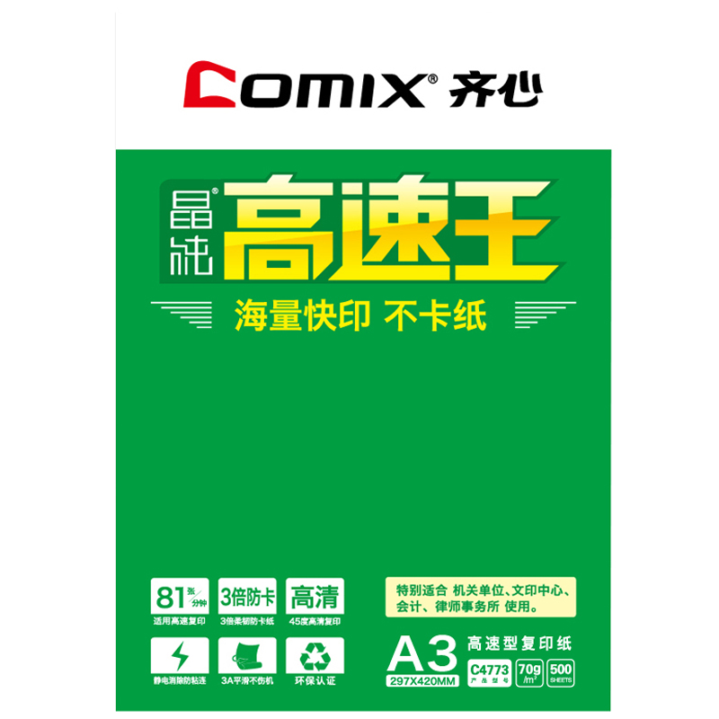 商品属性 [] 广东 [系列] 齐心 高速王 [克数] 70g [纸张大小] A3 [每包张数] 500张/包 [包数] 4包 [颜色分类] 白色 [环保清单] [质量等级] [原材料类别] [中国环境标志产品认证证书编号] 无 [中国环境标志产品认证证书有效期] [产品尺寸(mm)] [包装清单] [售后服务] [国别]