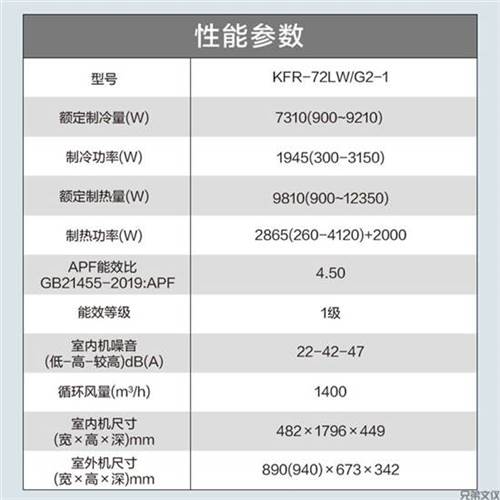 商品属性 [类别] 柜式空调机 [颜色分类] 白色 [类型] 柜式 [匹数] 正3P [能效等级] 1级 [定频/变频] 变频 [冷暖类型] 冷暖 [适用面积] 50㎡及以下 [能效比] 4.42 [制冷量] 7290 [制热量] 9720 [产品特色] 变频 [循环风量(m³/h)] 1310 [额定电压/频率] 220V/50Hz [电辅加热功率(W)] 2400 [外机噪音dB(A)] [内机噪音dB(A)] [室内机型号] [室外机型号] [室内机宽度(mm)] [室内机高度(mm)] [室内机深度(mm)] [室内机重量(kg)] [室外机宽度(mm)] [室外机高度(mm)] [室外机深度(mm)] [室外机重量(kg)] [中国节能产品认证证书编号] CQC21701314742 [中国节能产品认证证书有效期] [中国节能产品认证证书扫描件] [中国环境标志产品认证证书编号] [中国环境标志产品认证证书有效期] [中国环境标志产品认证证书扫描件] [中国国家强制性产品认证证书编号] 2020010703276768 [中国国家强制性产品认证证书有效期] [中国国家强制性产品认证证书扫描件] [重量(kg)] [质保期限] 6年 [包装清单] [售后服务]